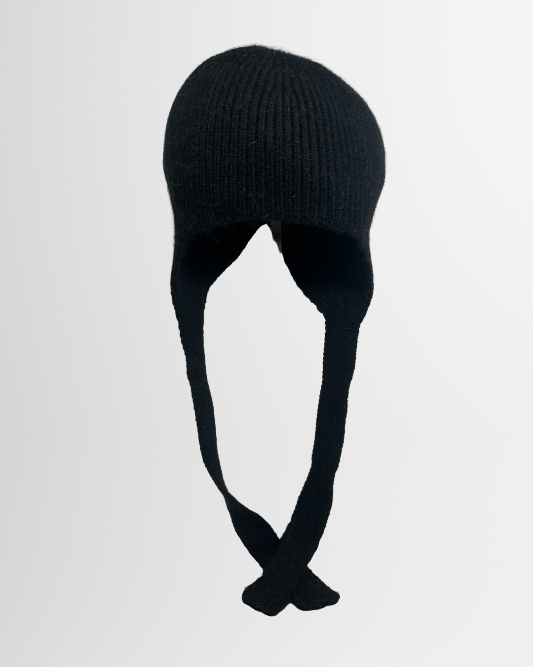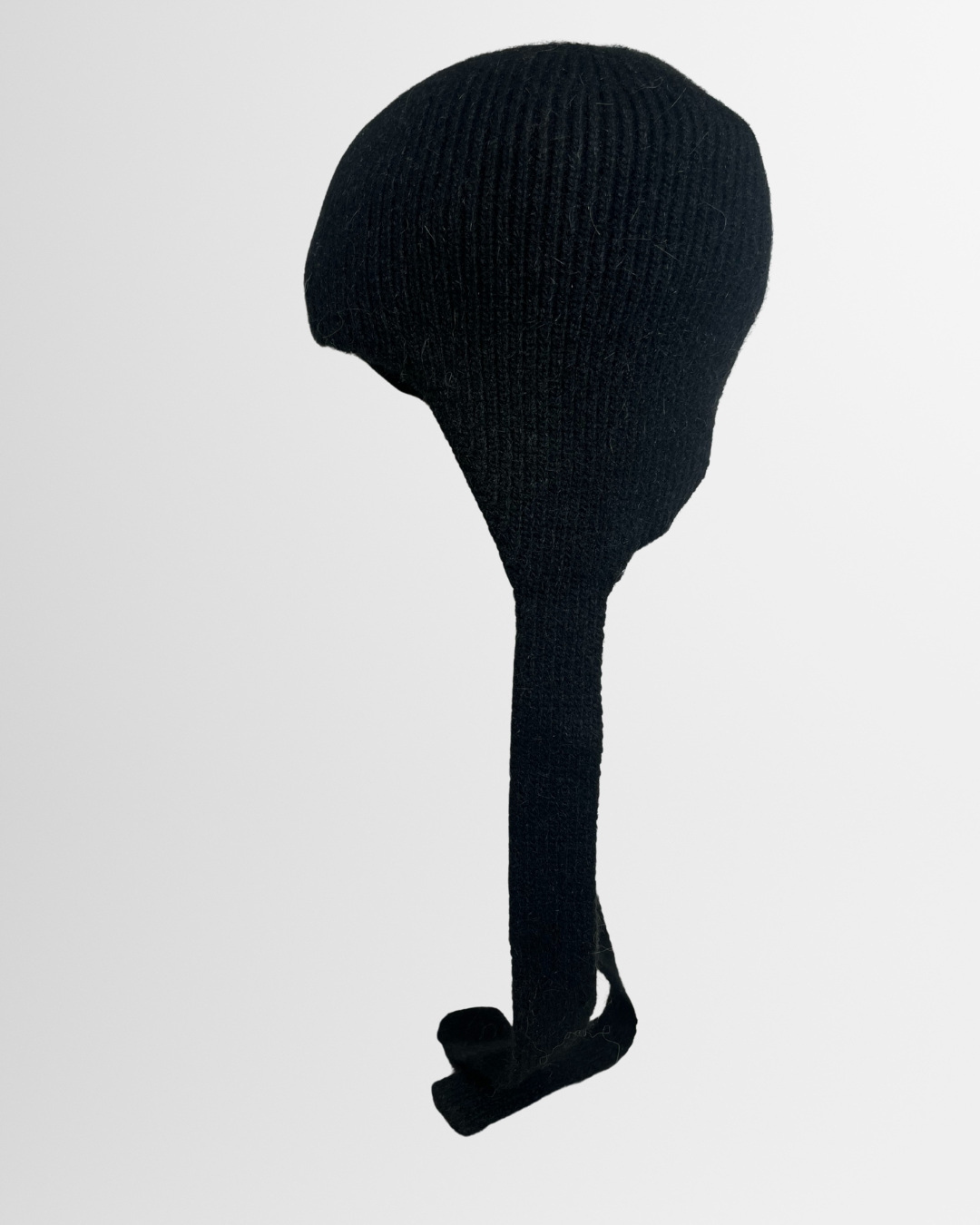 Berretto invernale donna in 30 % angora e 70 %acrilico, morbido e caldo con paraorecchie e laccetti eleganti. Perfetto per look casual o chic.