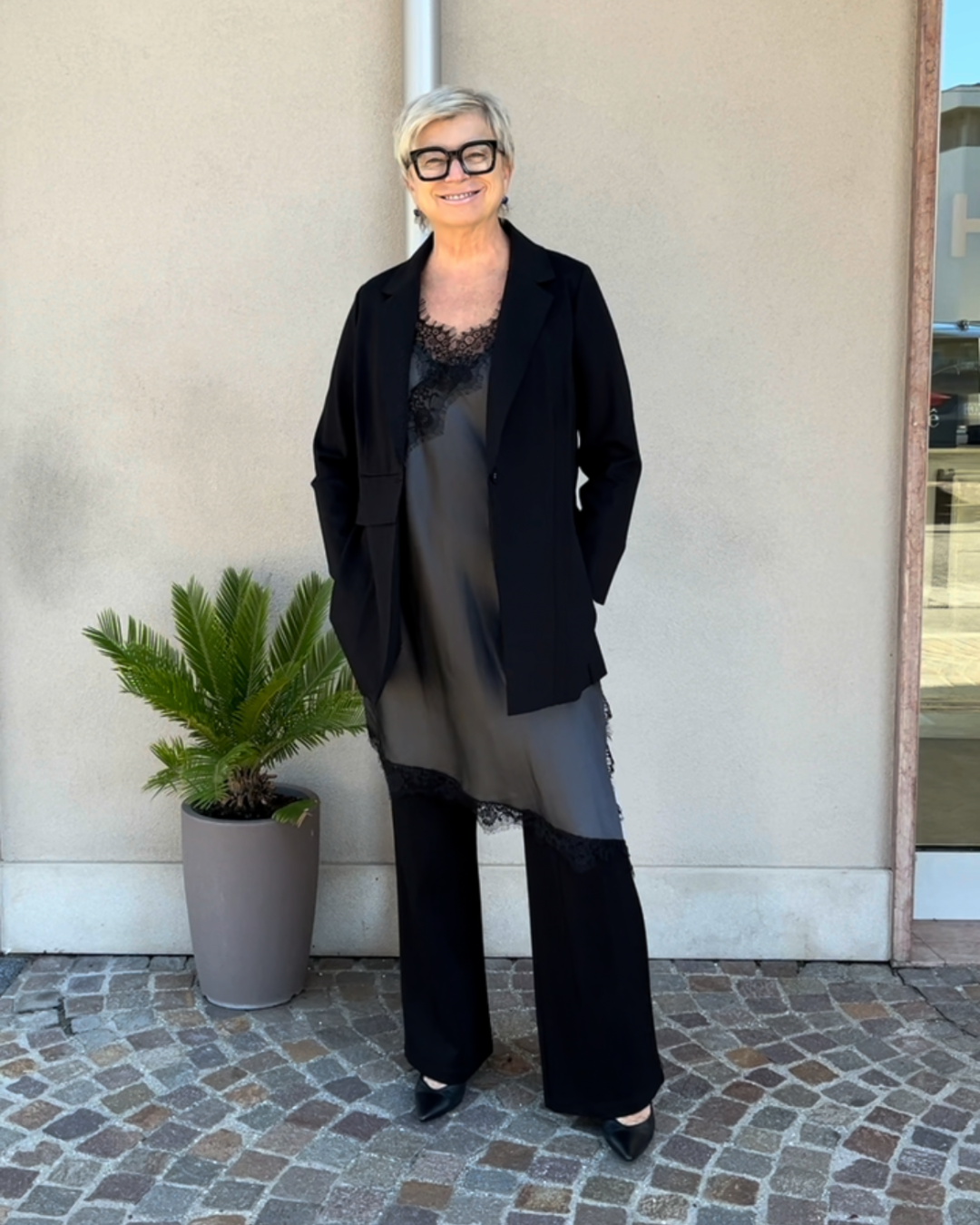 Top in raso con pizzo - grigio